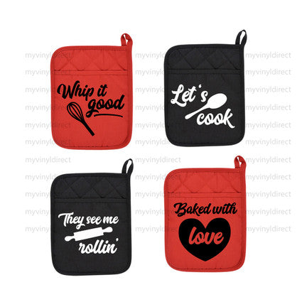 This 4 pack of kitchen designs is so fun and the perfect addition to your kitchen. Add them to signs, hot pads, & more!